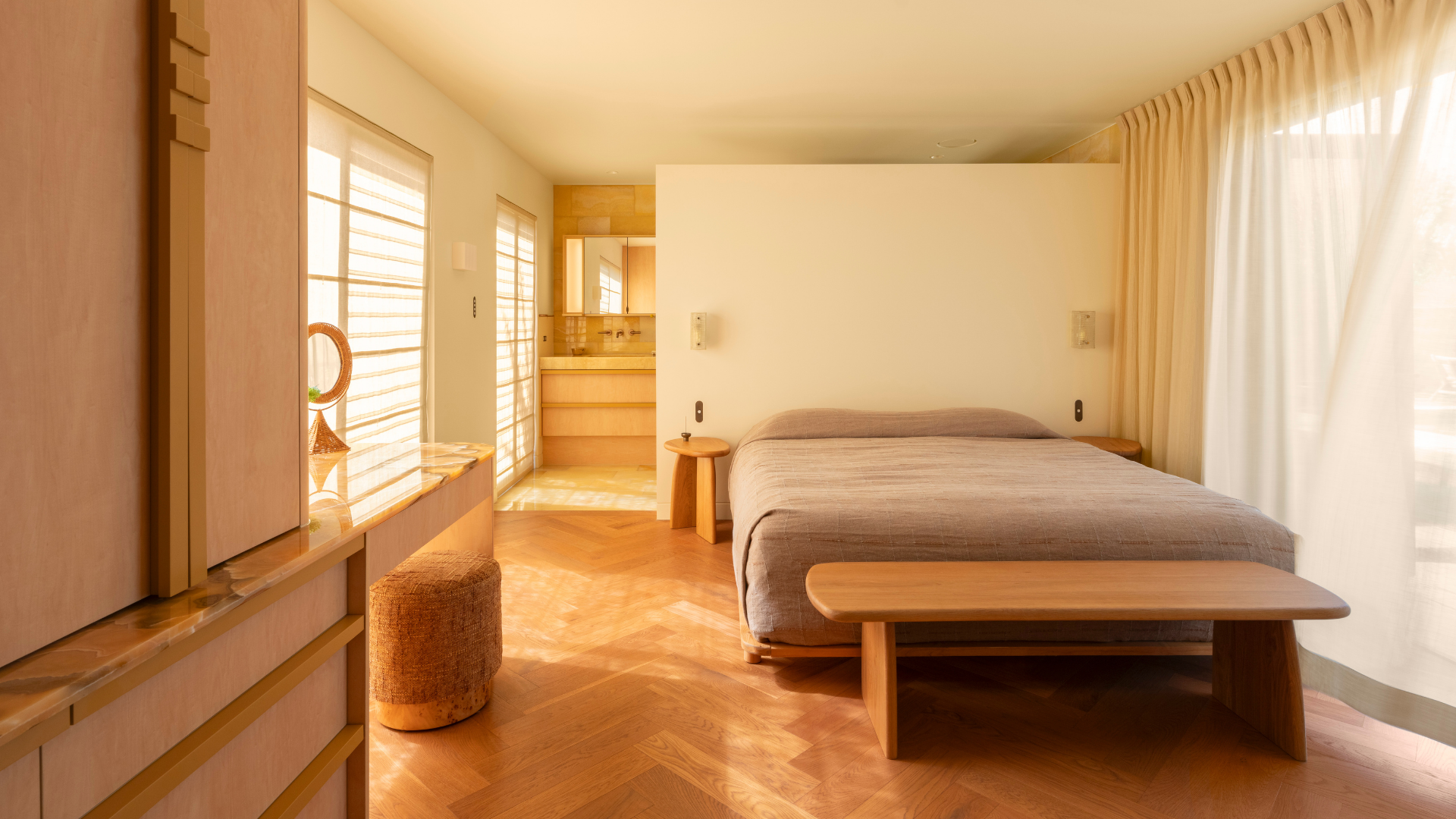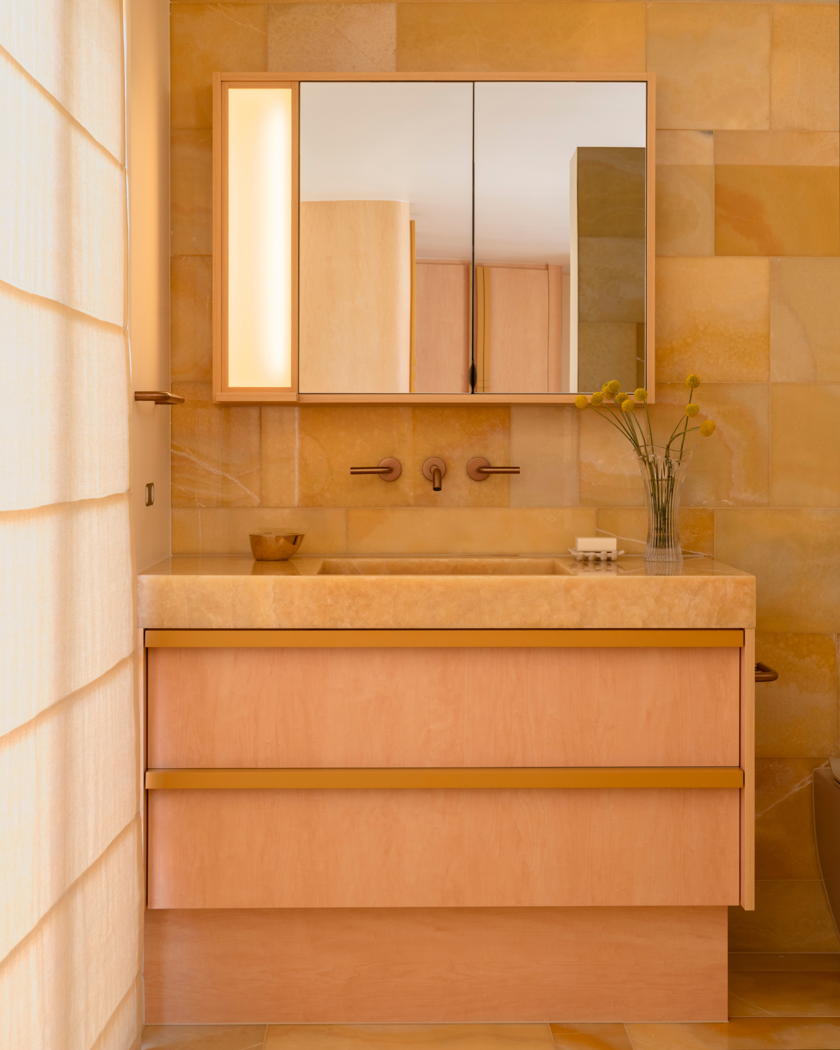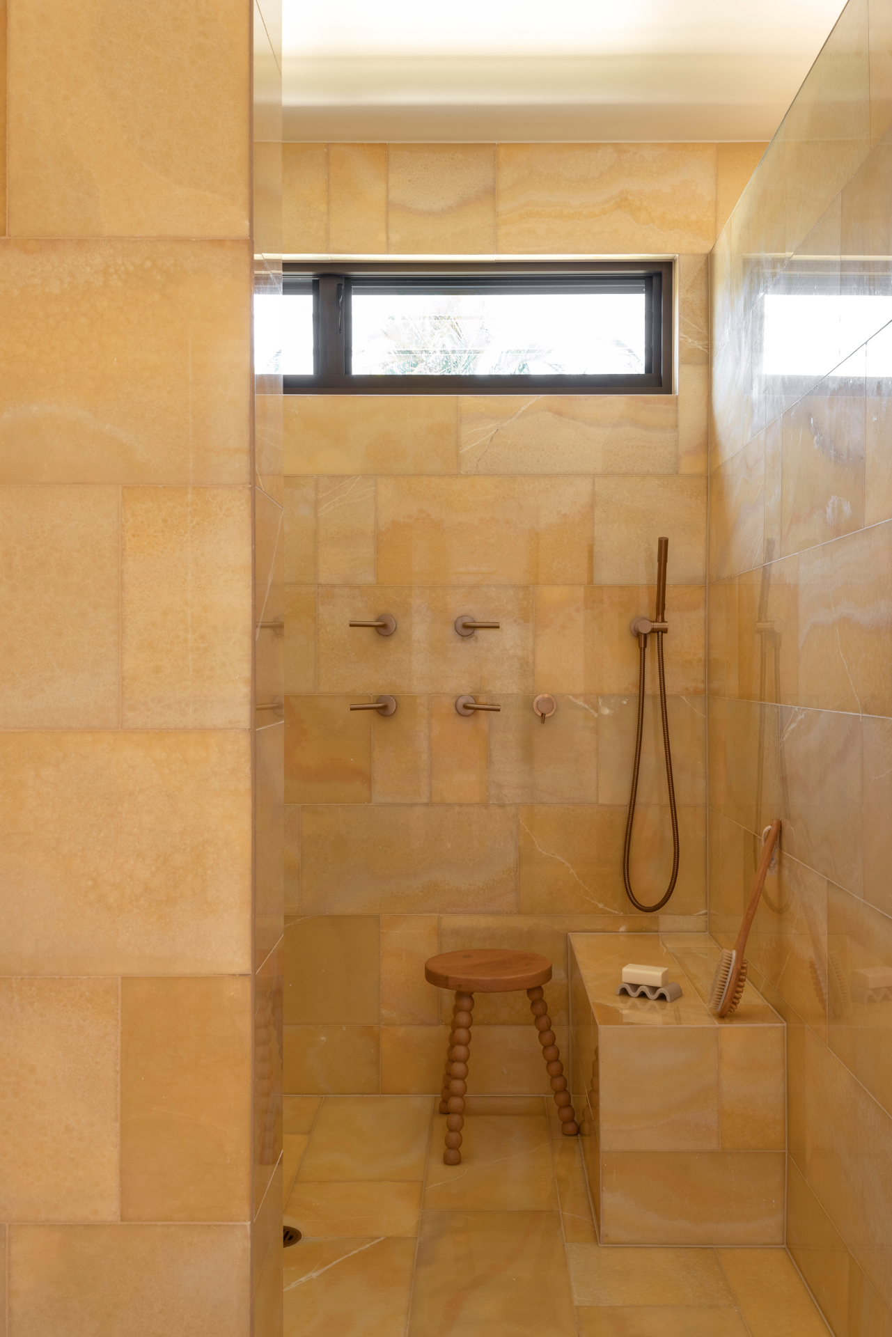 Natural stone plays a defining role in the home. Fleur Studios Co-Founder, Wesley, worked closely with Madison to personally source the marble and onyx for the home - used across the bathroom, kitchen and more. A service we don’t typically offer here at FS, but one that felt important given the significance of this project and the longstanding friendship with Madison.