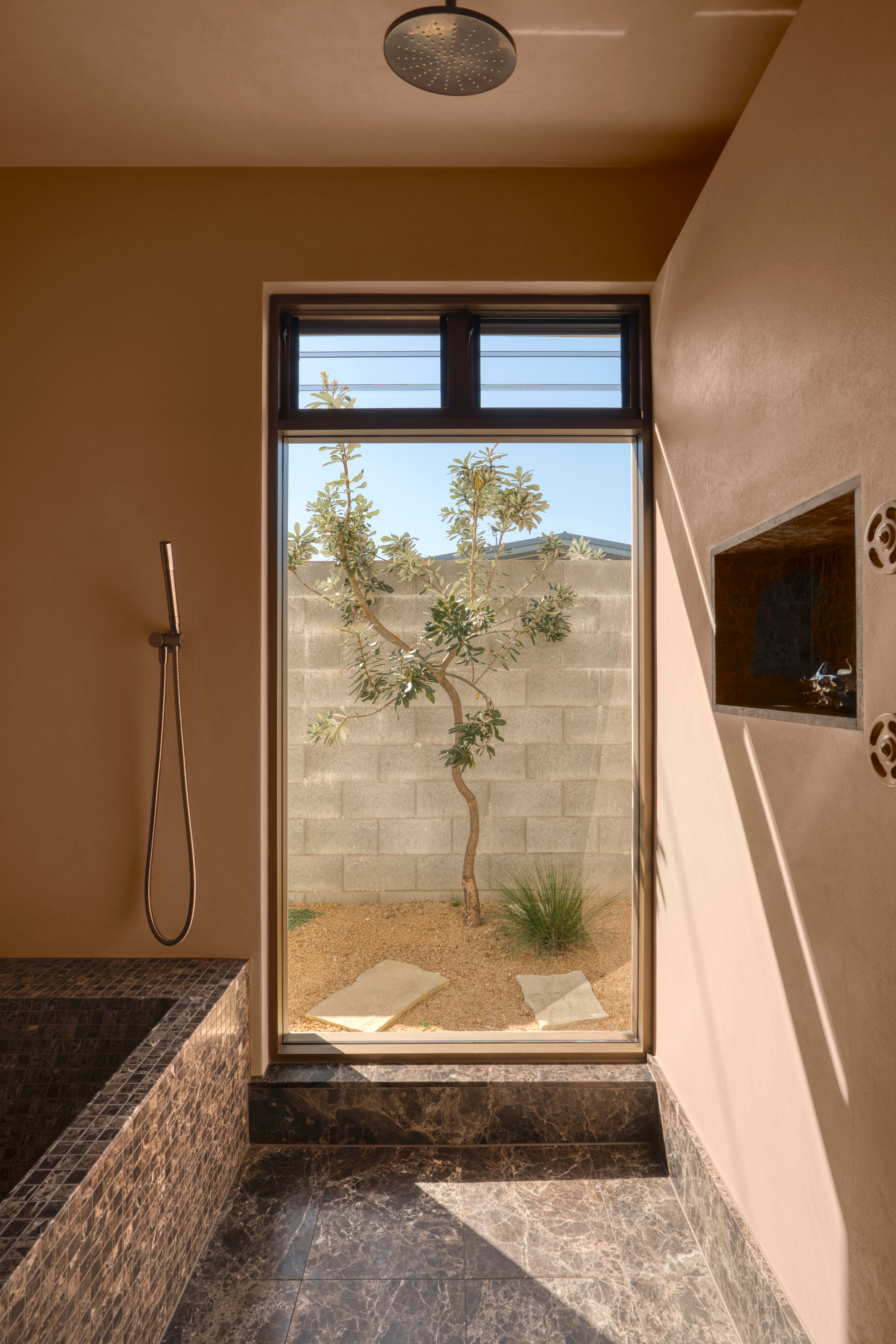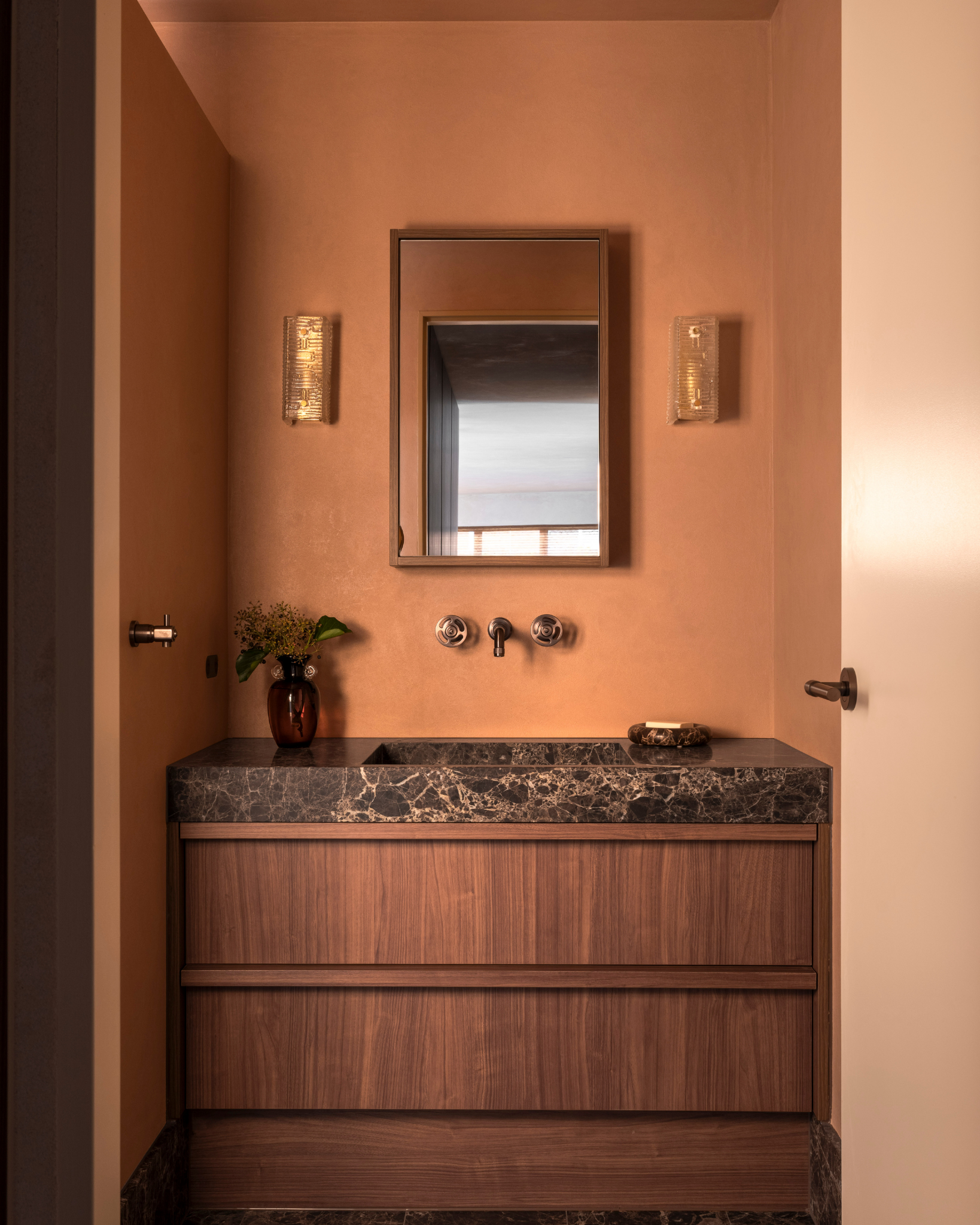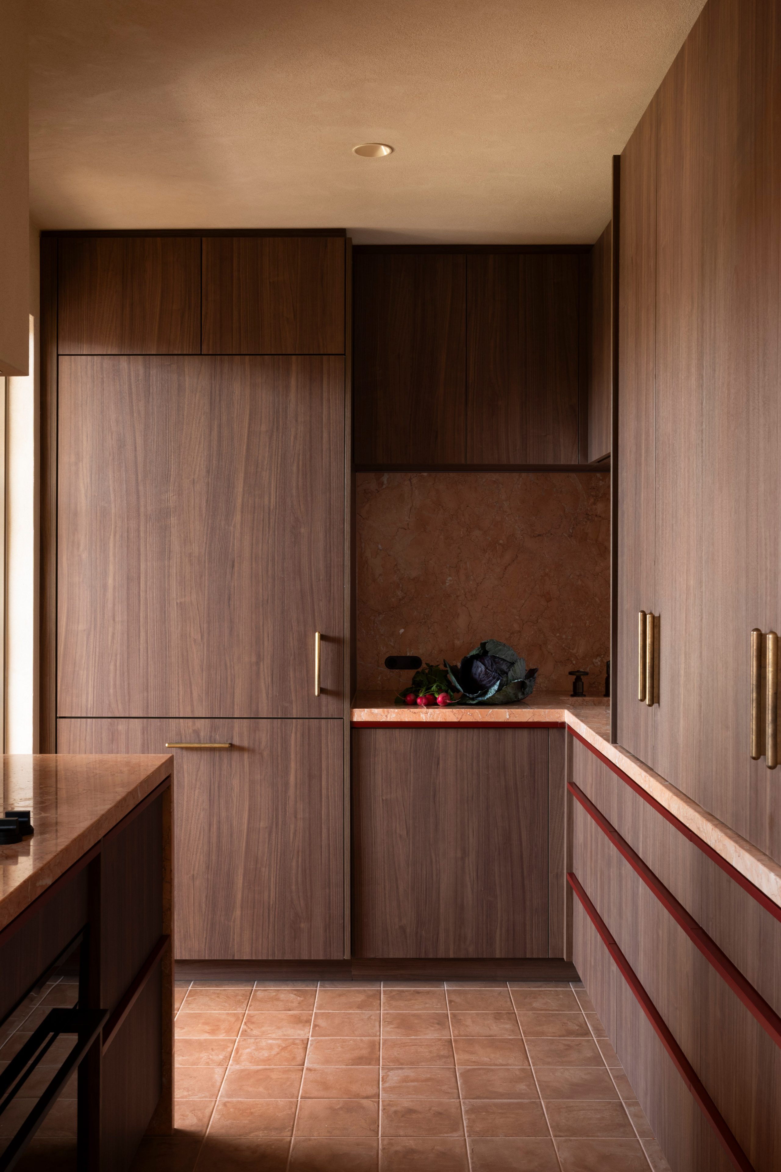 Natural stone plays a defining role in the home. Fleur Studios Co-Founder, Wesley, worked closely with Madison to personally source the marble and onyx for the home - used across the bathroom, kitchen and more. A service we don’t typically offer here at FS, but one that felt important given the significance of this project and the longstanding friendship with Madison.
