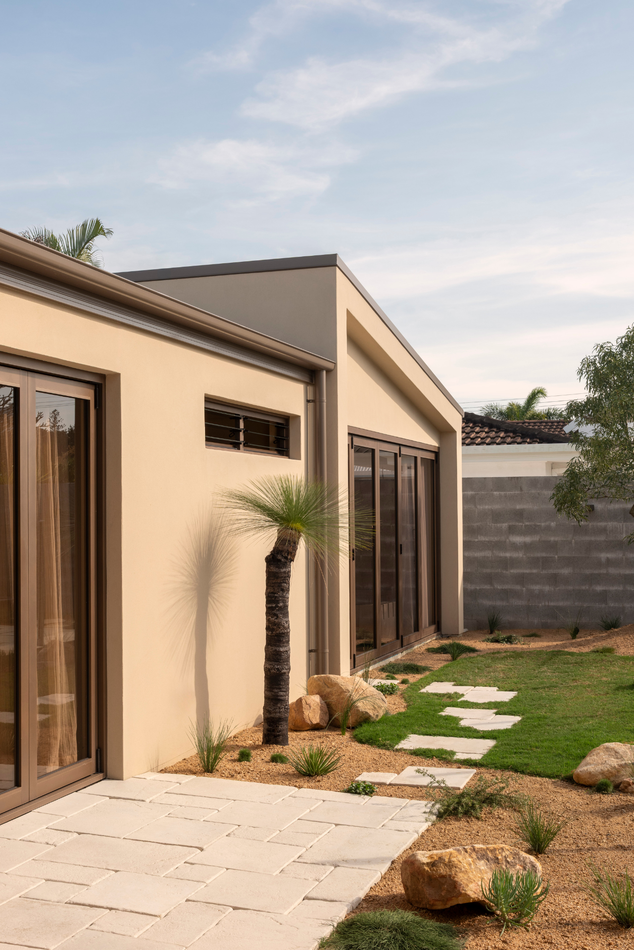 Designed as both a home and creative studio, the residence brings together natural materials, textured surfaces and carefully considered details. It is calm yet expressive, grounded in intention rather than trend.