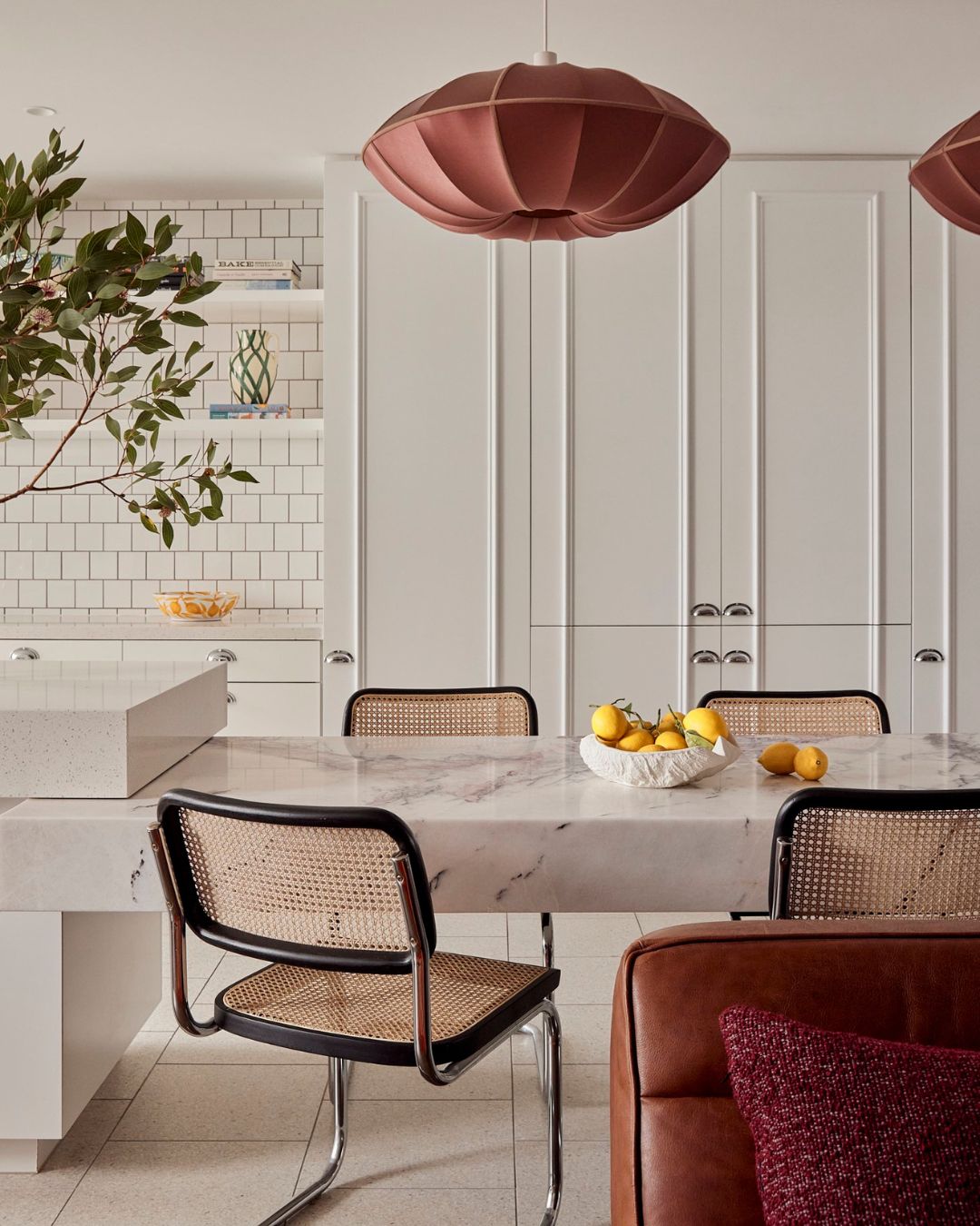 While the apartment’s structural integrity and loft-style architecture provided a strong foundation, its minimal furnishings left room for a complete interior refresh. This allowed Mariah to work with a blank canvas, focusing on enhancing the apartment’s personality through custom joinery, vibrant palettes, and layered materials with a curation of bold marbles.