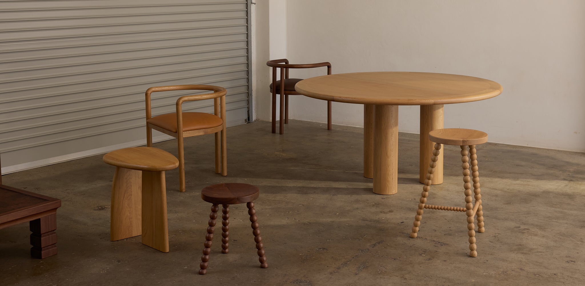 The sculptural silhouettes have a refined restraint brought to life by the characteristics in the American Walnut & Oak. It's contemporary with a nod to the past and designed to become future heirlooms."