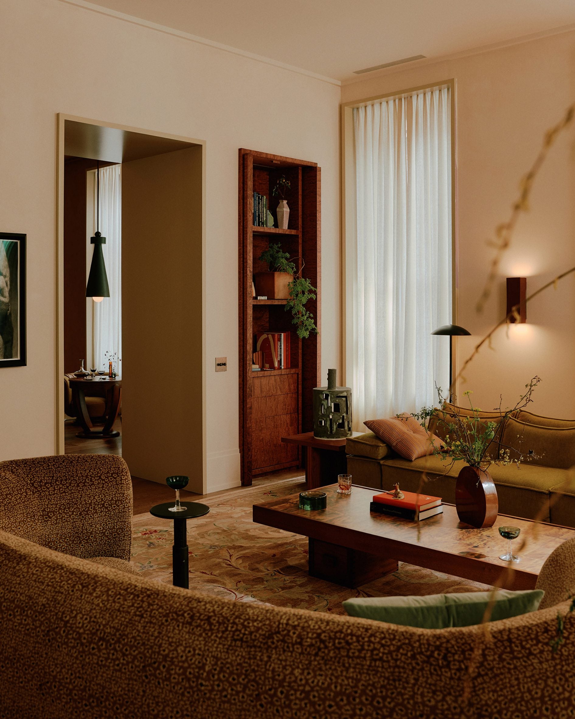 Timber, vintage lamps, eclectic coffee table books & simple foliage arrangements.