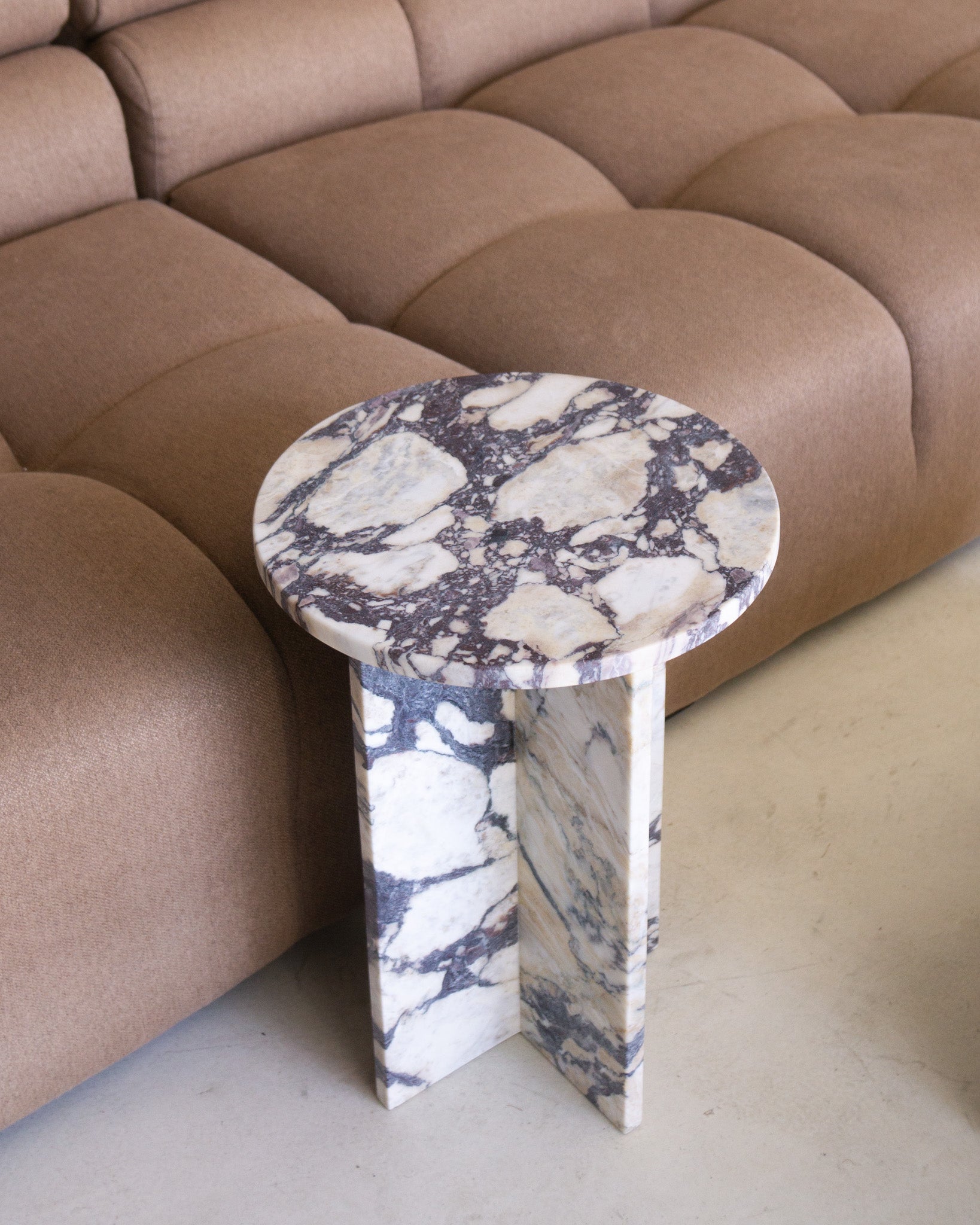 A luxurious Italian marble with striking patterns, Calacatta Viola is a beautiful balance of dark and light colours. This petite table in Viola has a way of instantly transforming a space, adding colour and texture in a way the elevates the entire room.