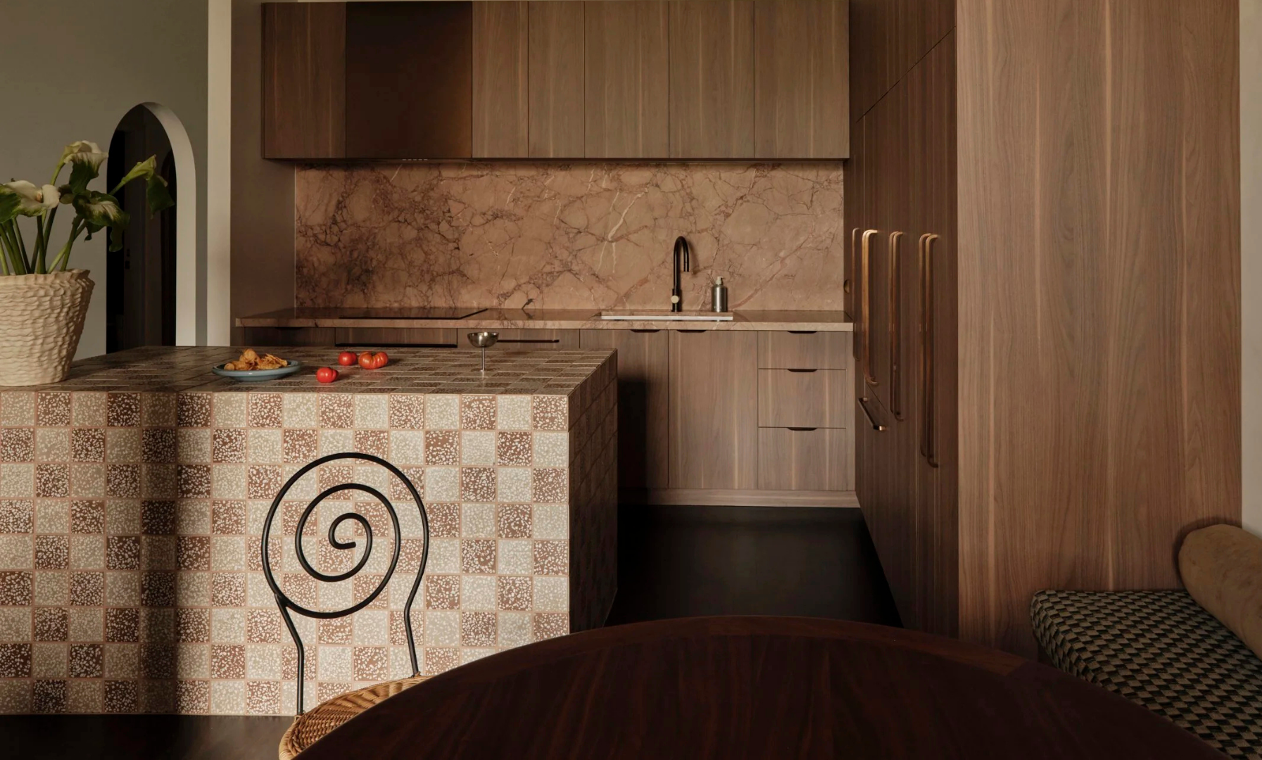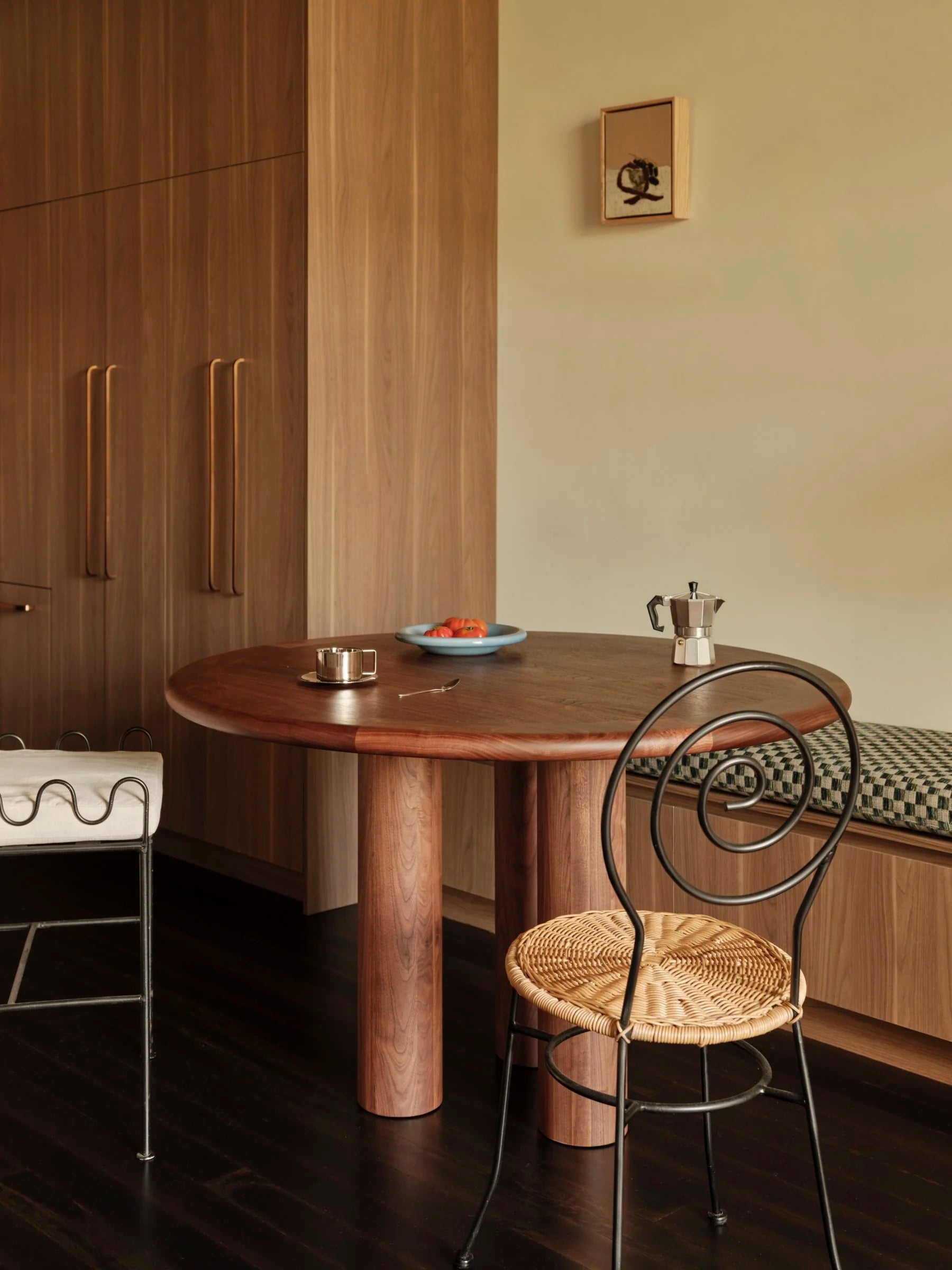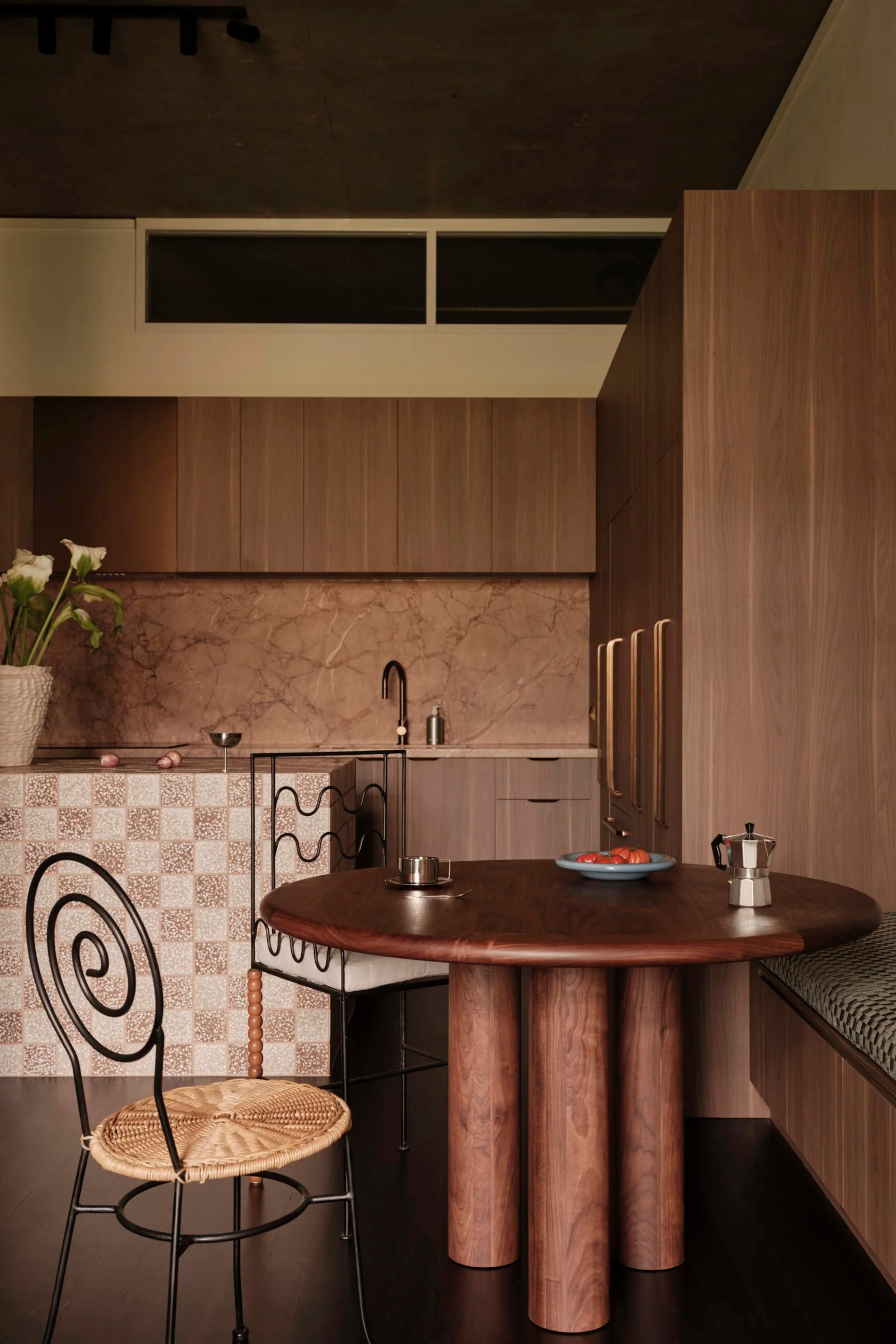 The loft has been thoughtfully transformed by Folk Studio into a refined, contemporary residence for its long-time owner. An organic, tactile palette of natural stone, terrazzo and soft neutrals sets a warm foundation that allows key furniture designs to shine.