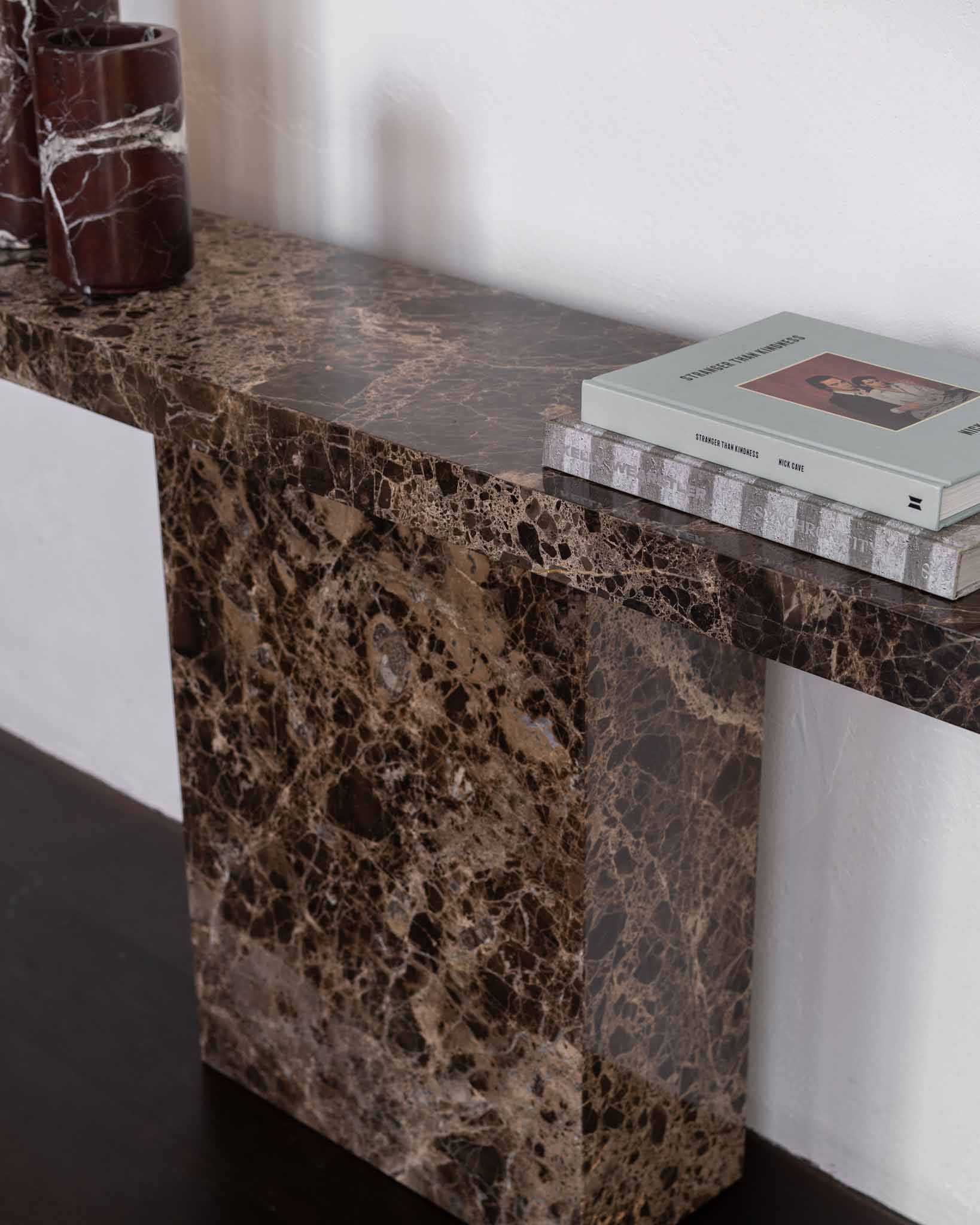 Celebrating marble, the clean lines of the silhouette bring a refined aesthetic that’s paired with the luxury of generous proportions - a true statement console. Available in a curated collection of marbles, each with its own aesthetic, every console feels like a future heirloom.