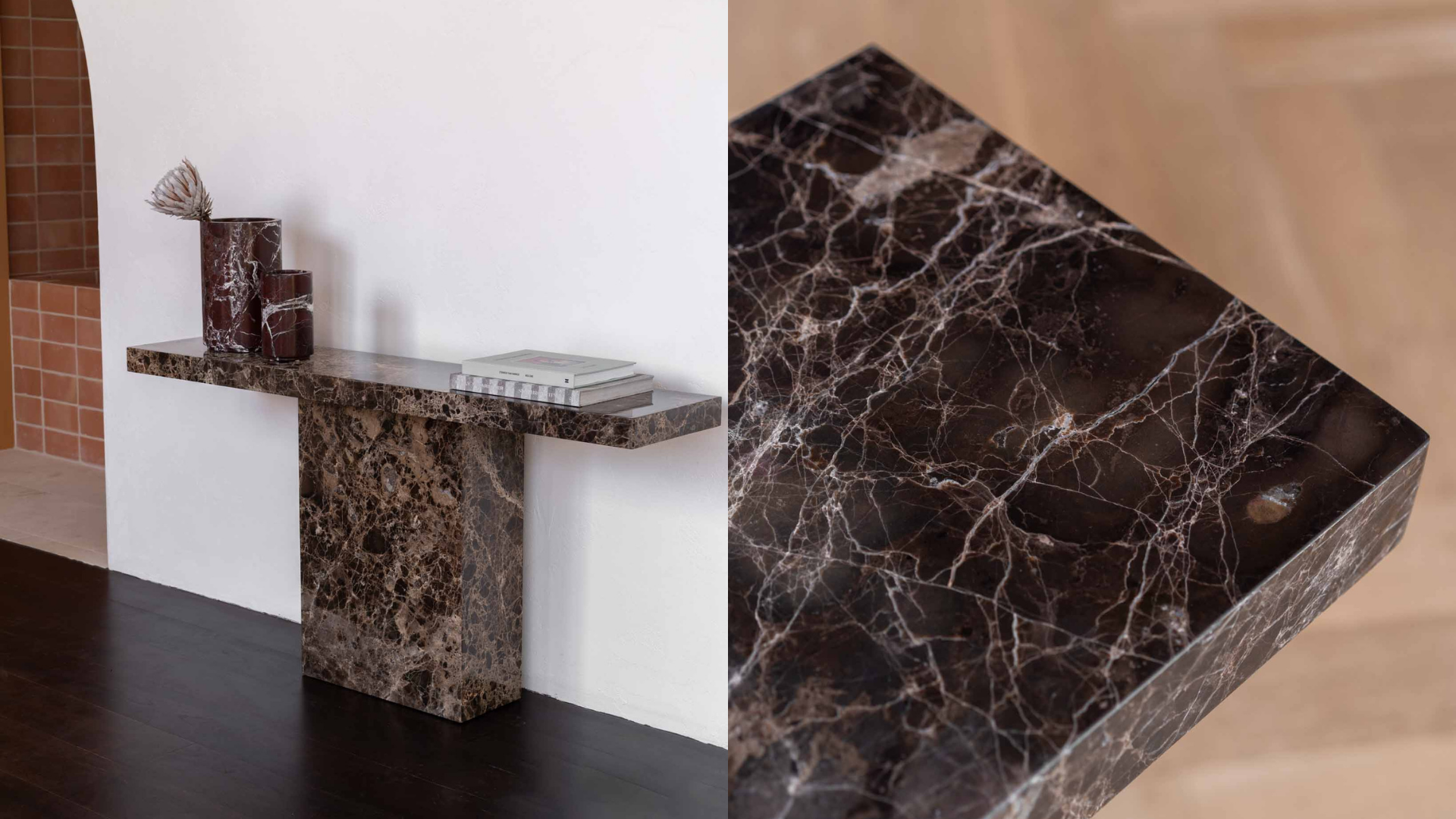 "I wanted to create a console that brought grandeur to a space whilst remaining refined in silhouette. Materials bring so much to design, especially marble with every piece being completely unique and the pedestal leg was a great way to showcase this."