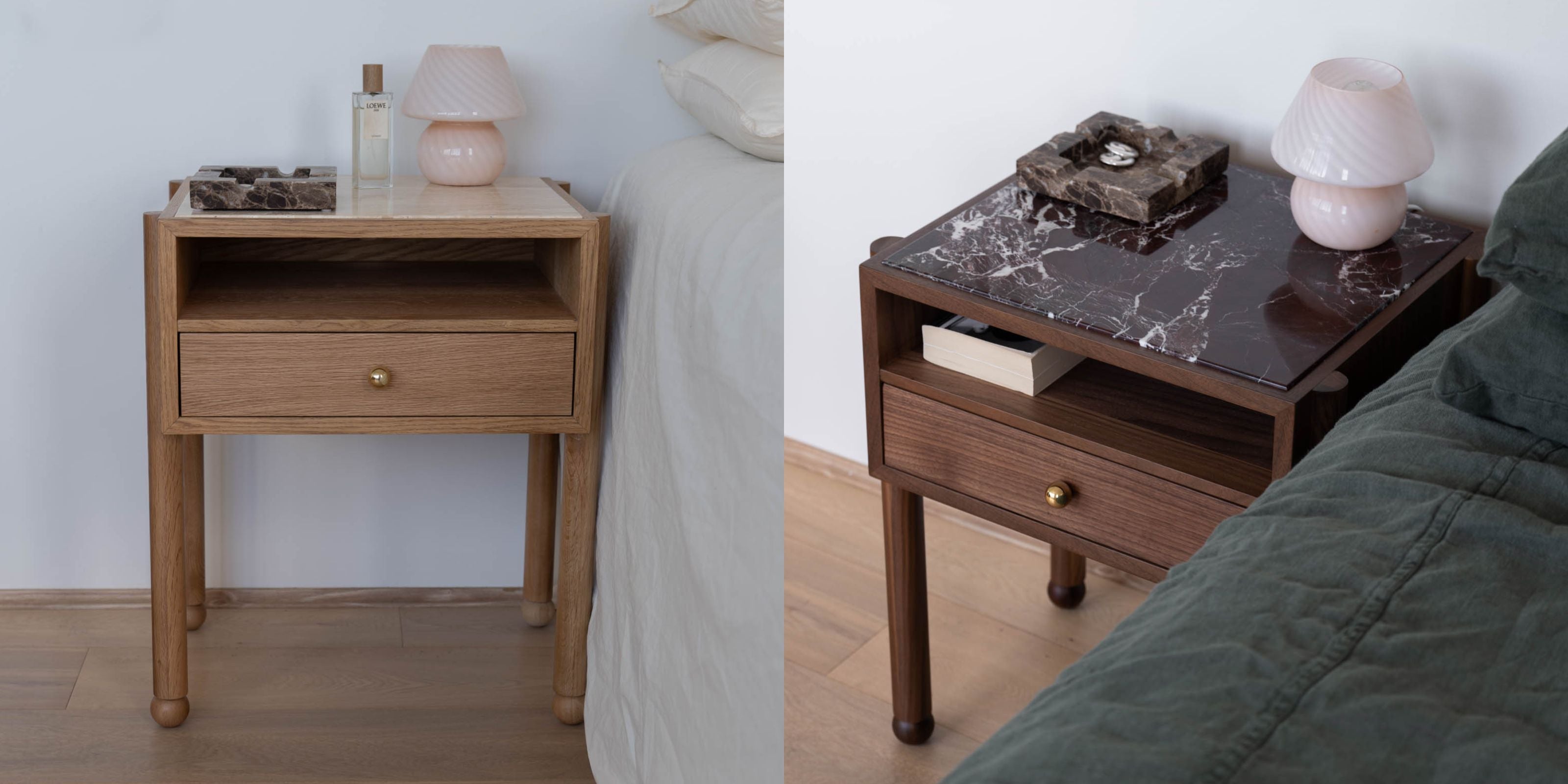 "Lightweight and compact, the Naomi arrives as one piece and is easy to move around. With the option to add a stone top, it's the perfect bedside for anyone looking to upscale their bedroom or the kids."