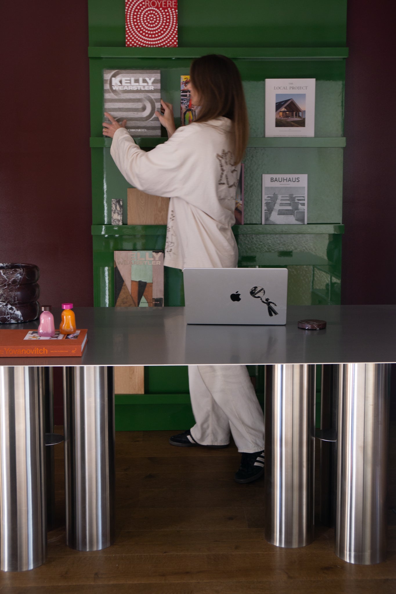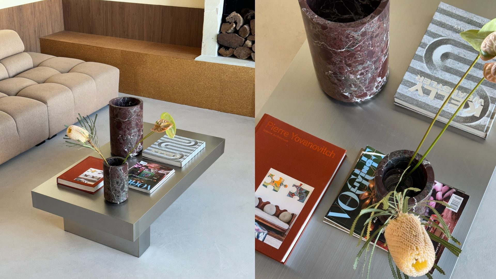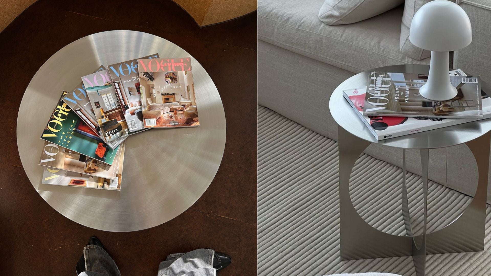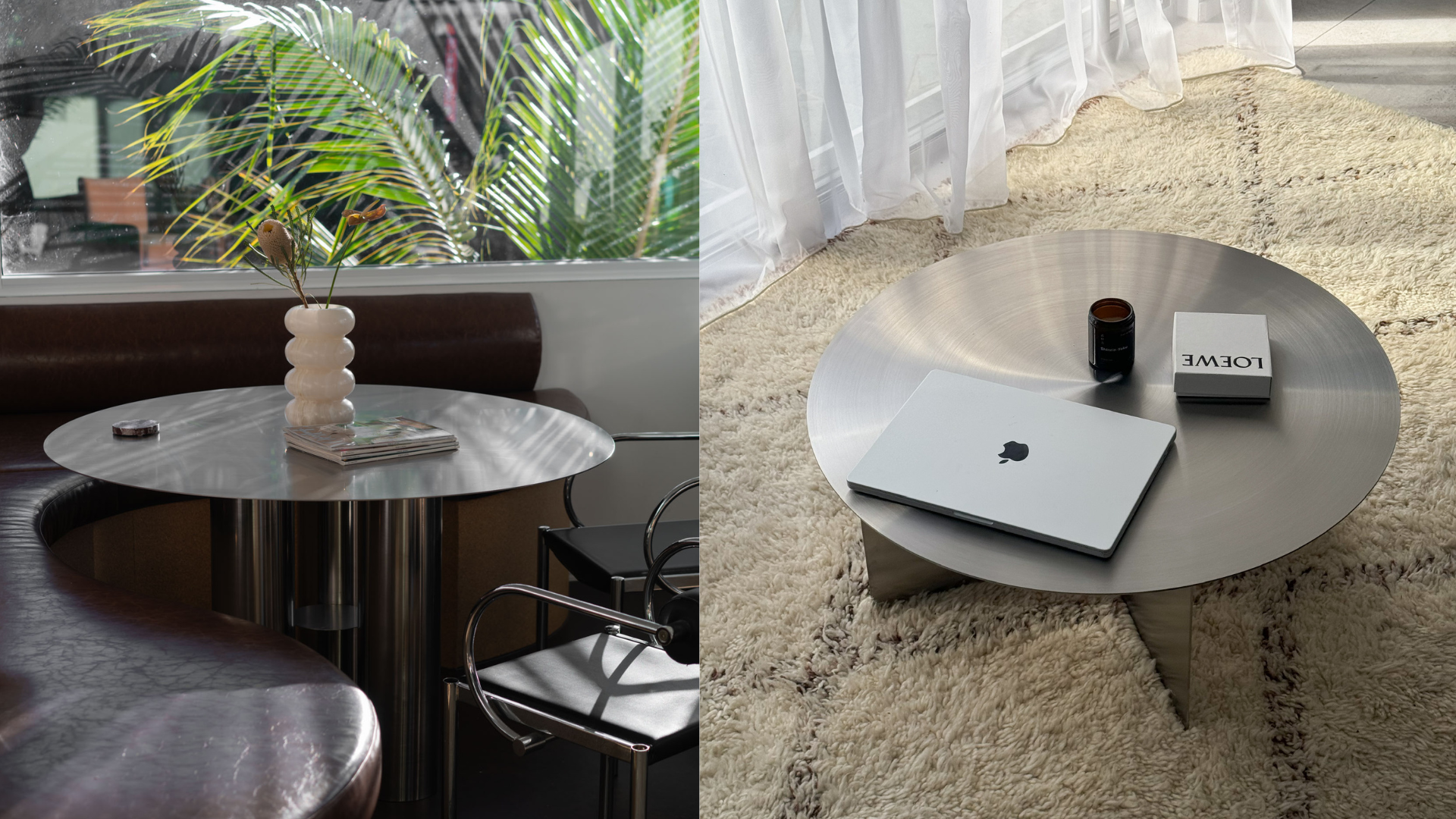 The table is made with Brushed Stainless Steel in a considered petite size - it's best paired with the matching side table.