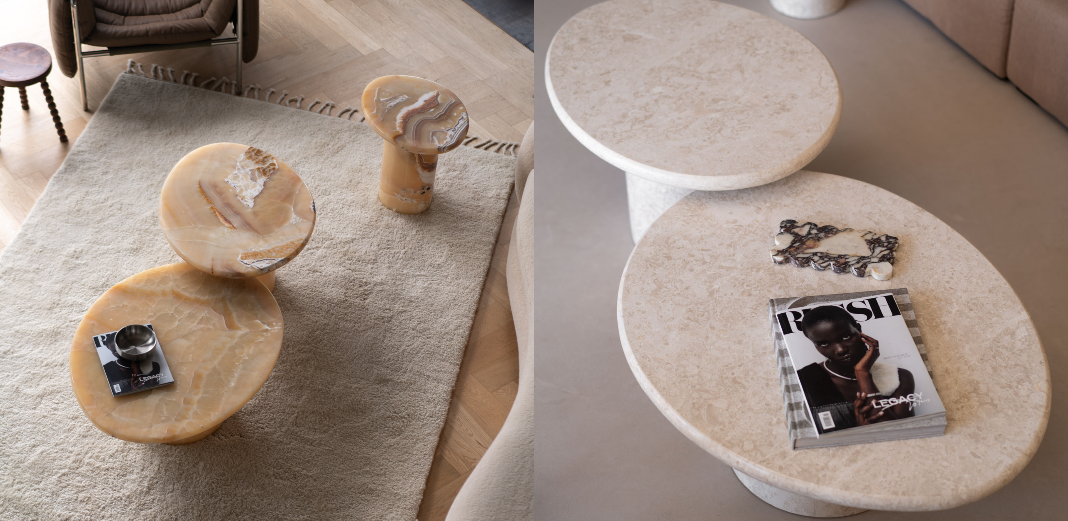 With softly rounded tabletops, they serve as an ode to relaxed luxury.