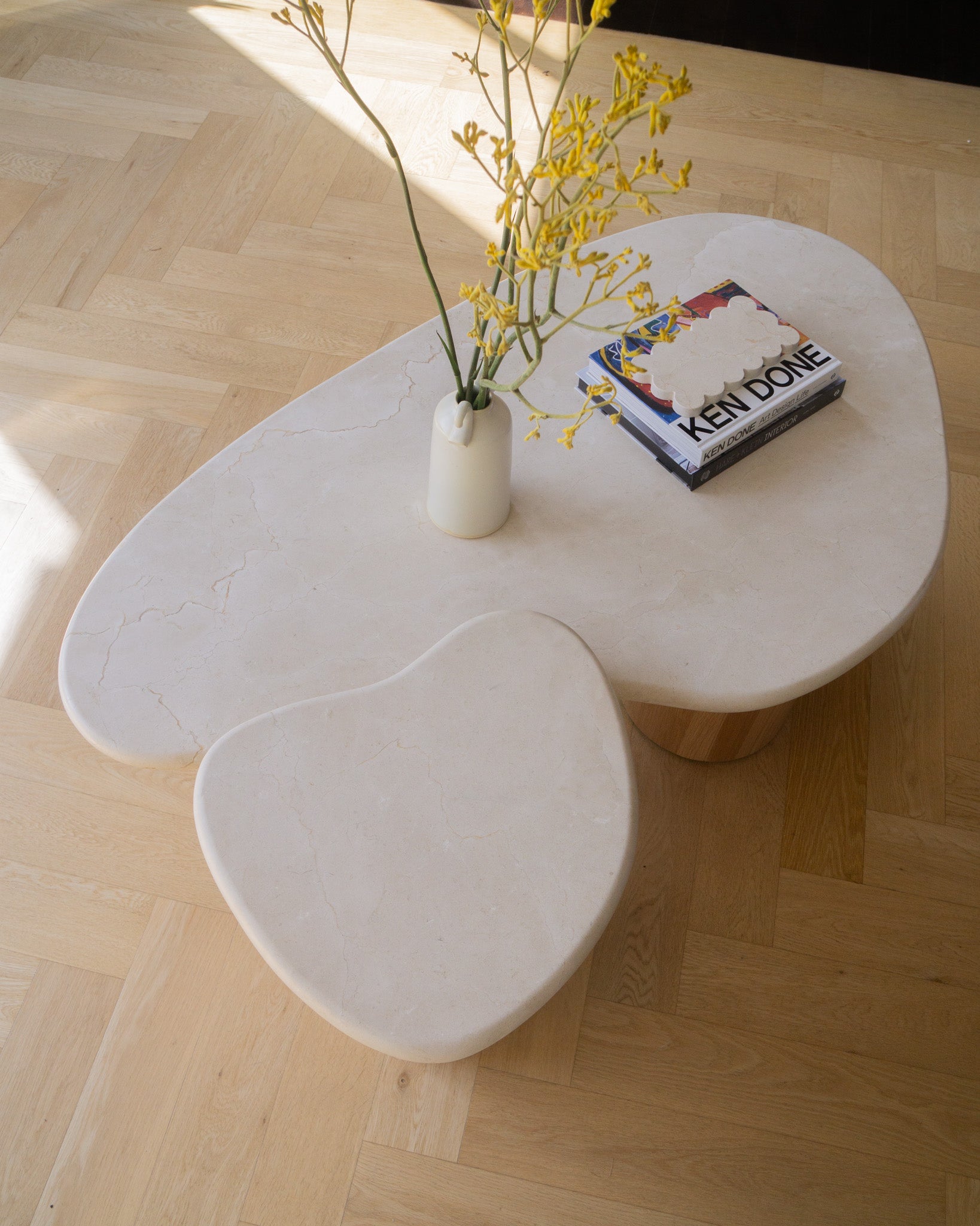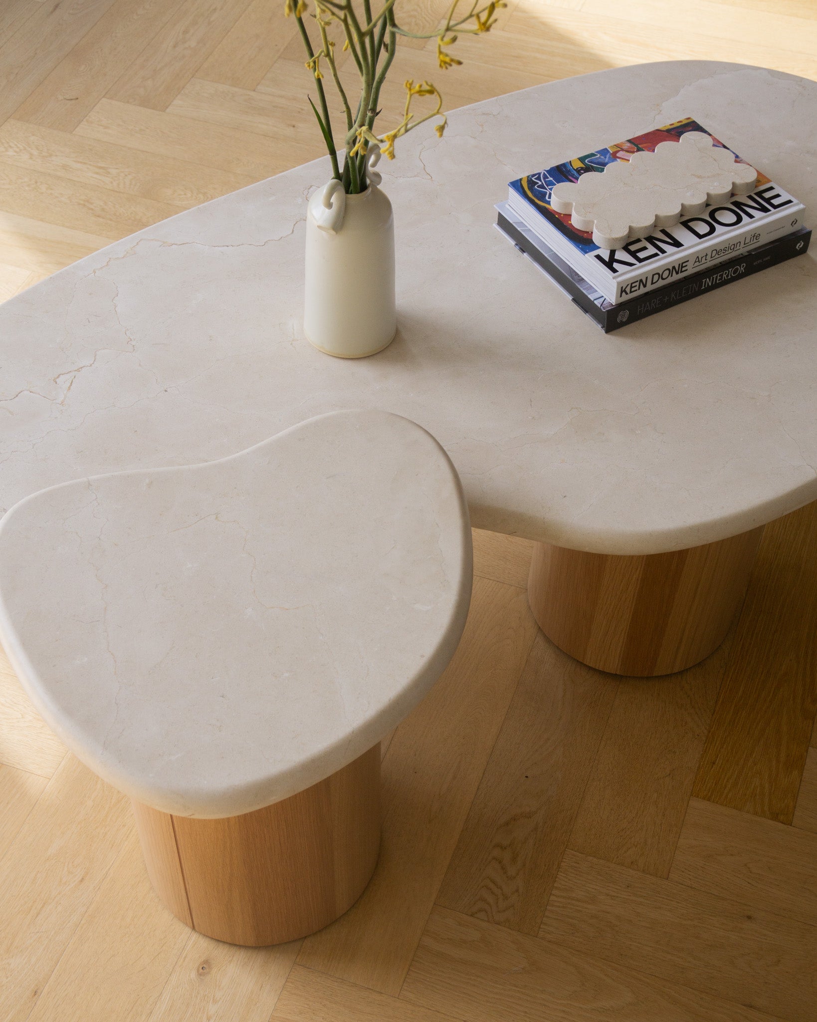 When together, the Pebble coffee table and side table nest effortlessly to create flexibility in how the pieces can be used.
