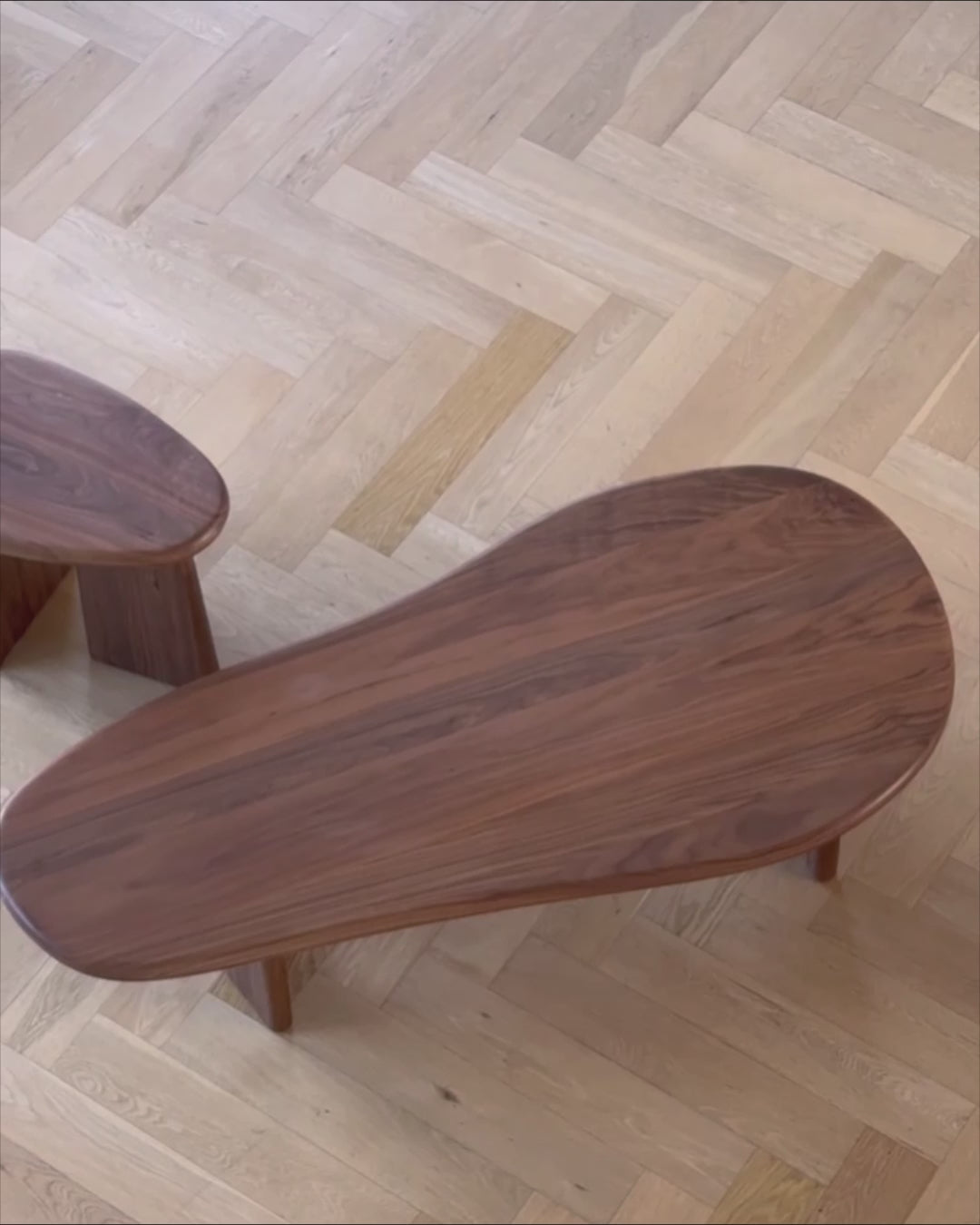 Characterised by intuitive form, the Beau solid Walnut coffee table features an organic tabletop paired with statement legs. With a relaxed silhouette and distinct boldness, the design is versatile and suited to a variety of spaces.