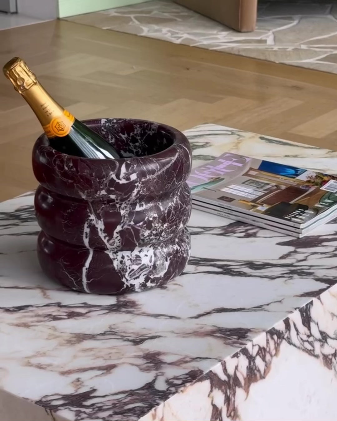 The Cloud Champagne Cooler is CNC cut from a block of stone and is hand polished to achieve the beautiful honed finish.