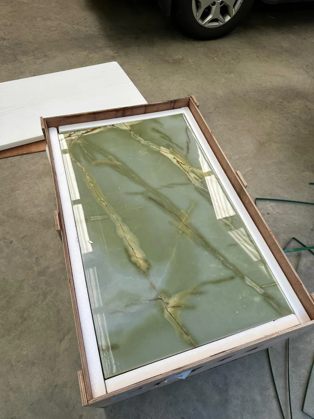 LOVE our new green onyx plinth coffee table. Very happy with the quality and natural patterns and colours. Delivery was smooth and the guys took extra care to uncrate, bring inside and place for us. Would highly recommend and would definitely purchase again. Thank you!